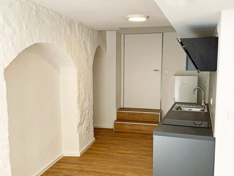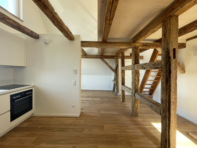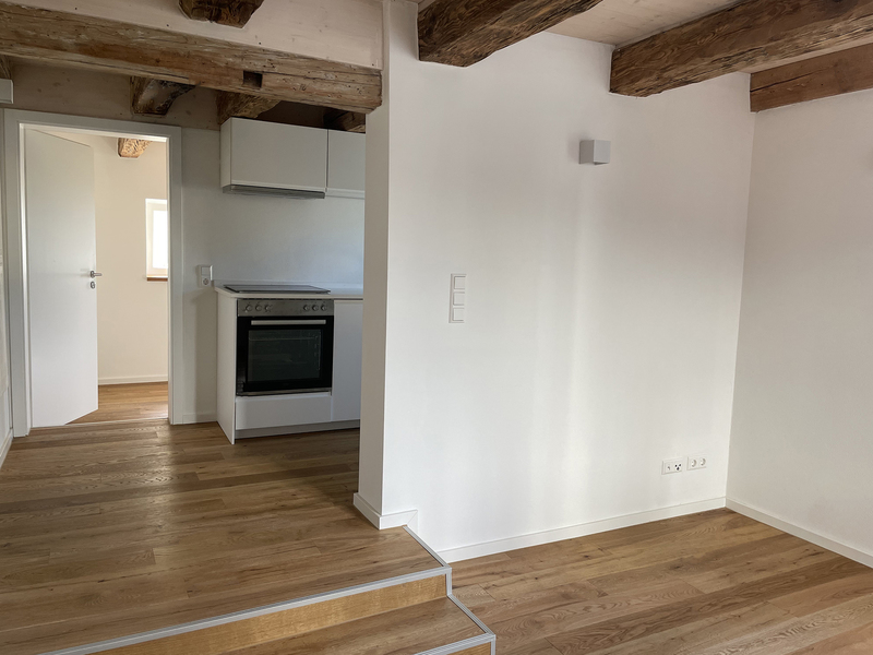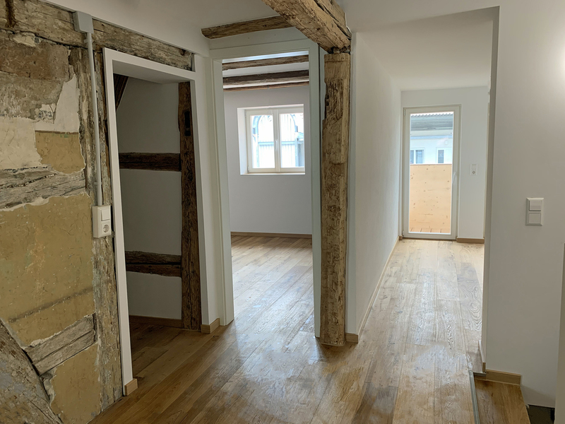 das haus wurde durch dendrochronologische holzbestimmung auf die jahre 1328-1780 datiert und in enger abstimmung mit dem denkmalamt hochwertig saniert. mitten im zentrum von kaufbeuren entstanden 2 moderne wohneinheiten mit einer gewerbe-einheit im erdgeschoss.