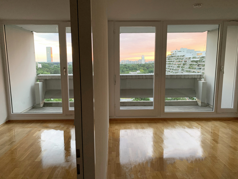 sanierung einer denkmalgeschützten wohnung aus den 70er jahren. das wohnensemble mit typischen erscheinungsbild dieser zeit wurde im zuge der olympischen spiele 72 errichtet.
