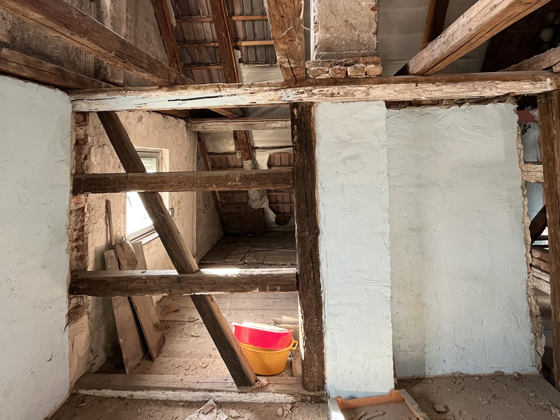 denkmalgeschütztes haus aus dem 18 jhdt. in mischbauweise saniert. dämmung im og 16+16cm.