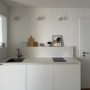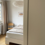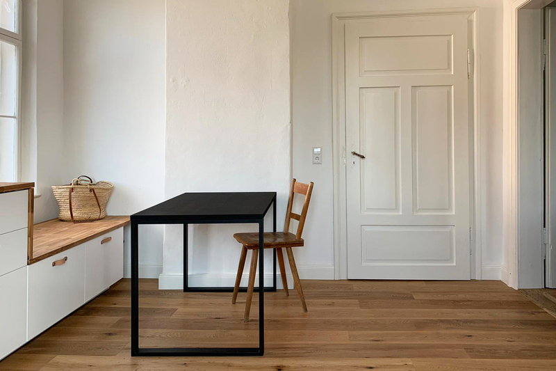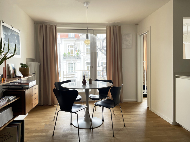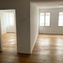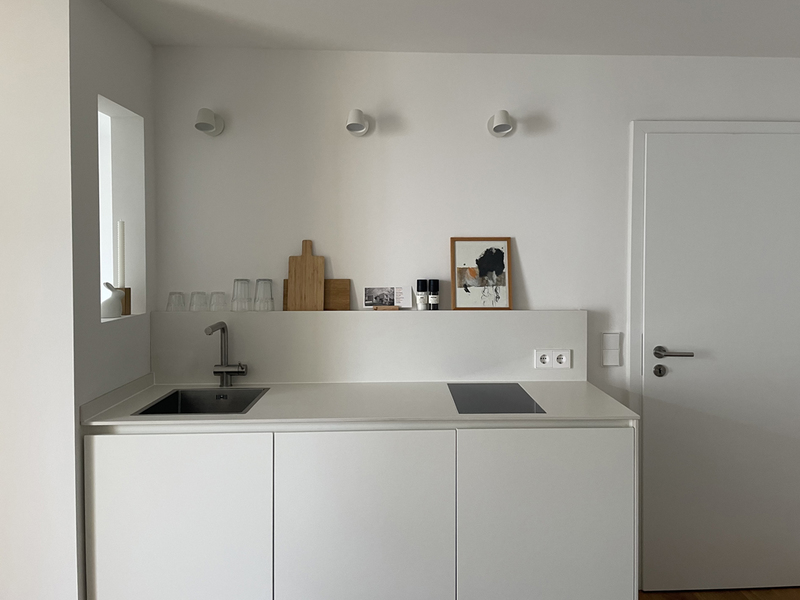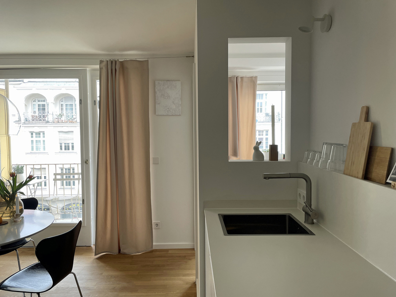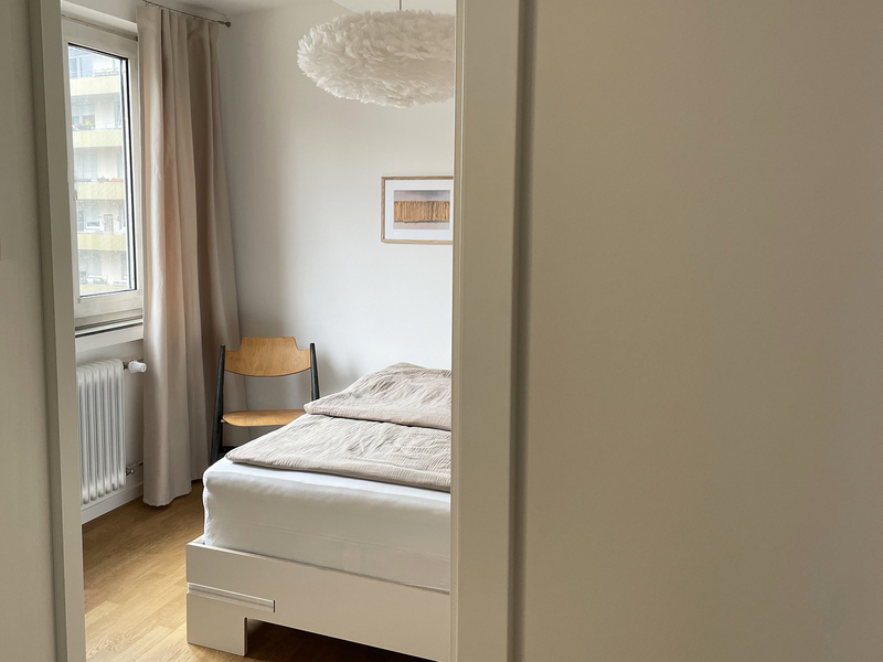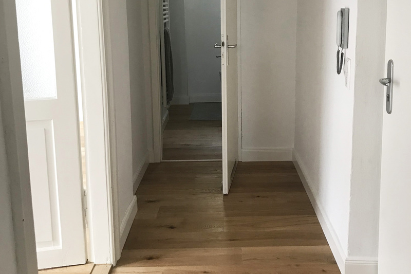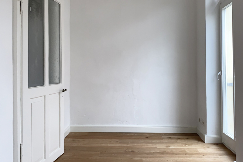 sanierung einer stadtwohnung aus den 60er jahren. der grundriss wurde neu angepasst und die ehemalige küche zu einem kleinen schlafzimmer erweitert. sämtliche oberflächen wurden erneuert und das bad komplett neu aufgebaut. fenster wurden nicht ersetzt, um den charakter zu erhalten.