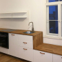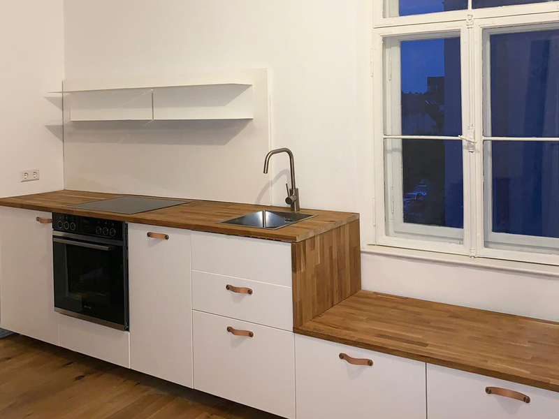 originale einbauten wurden aufgearbeitet und best. oberflächen saniert, die einbauküche ist neu.