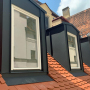 stadthaus in massivbauweise mit 30cm aussendämmung. dachdämmung 48cm aufdachdämmung. fenster in holz mit 3fachverglasung mit u-wert von 0,8 W(m²K).untergeschoss mit einliegerwohnung. vorgestellter stahlbalkon.