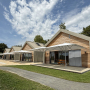 gebäude mit thermodoppelwänden aus vorgefertigten betonwänden mit 16cm. pu-kerndämmung und fassadenplatten in echtholz. tagesheim mit fünf neuen klassenzimmern und neuem verwaltungstrakt.